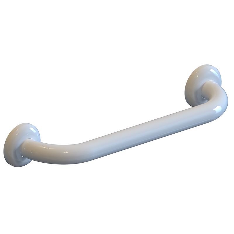 MANIGLIA DI SICUREZZA LINEARE, COSTITUITA DA UN SOLO PEZZO, SENZA GIUNZIONI, REALIZZATA IN ACCIAIO TUBO Ø 32x1,5, con TRATTAMENTO ANTICORROSIONE e RIVESTITA con MATERIALE ANTIUSURA EPOSSIPOLIESTERE COLORE BIANCO RAL 9016 , con PROPRIETÀ ANTIBATTERICHE DEI SALI D'ARGENTO BIO-GOMAN, COMPLETA DI: VITE SVASATA DI UNIONE Ø 10, PIATTELLI per FISSAGGIO a PARETE IN ACCIAIO INOX AISI304, a 6 FORI, ROSONI ACCIAIO INOX430 FUNZIONE "ANTIVANDALO". DIMENSIONE MM. 400. CE DISPOSITIVO MEDICALE, GARANZIA 10 ANNI. CAPACITÀ DI CARICO 150 KG. TIPO: GOMAN ARTICOLO ZM40/01
