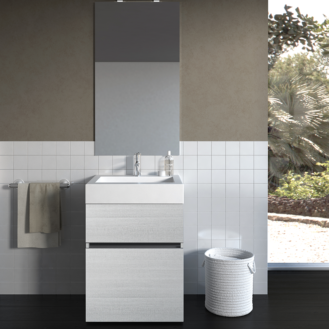 Mobile singolo composta da top lavabo cm. 61 e base poltrona con ruote – bianco tranche